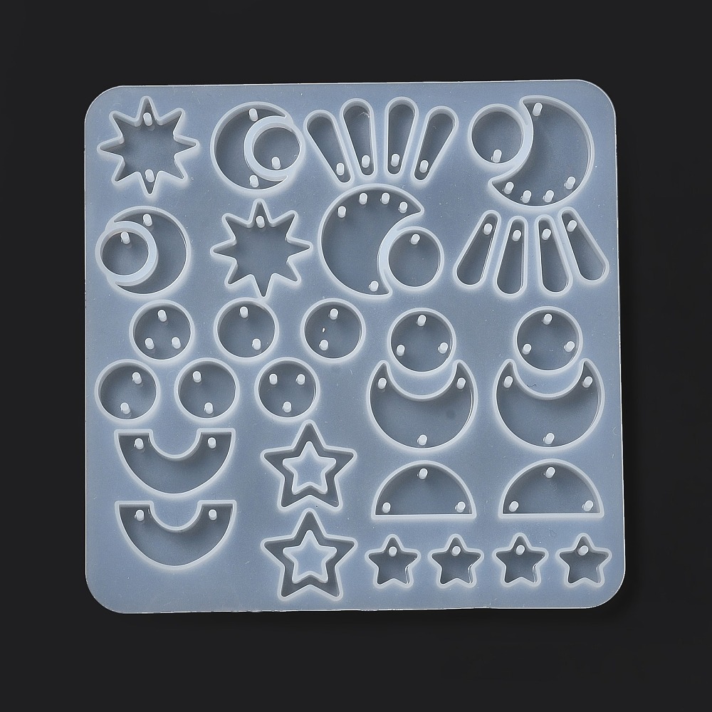 Silikonimuotti 9,5x12 cm. Sydämen, tähden ja suorakulmion halkaisija noin 4 cm, pienemmät 1,5cm. Sopii mm. koruhartseille.